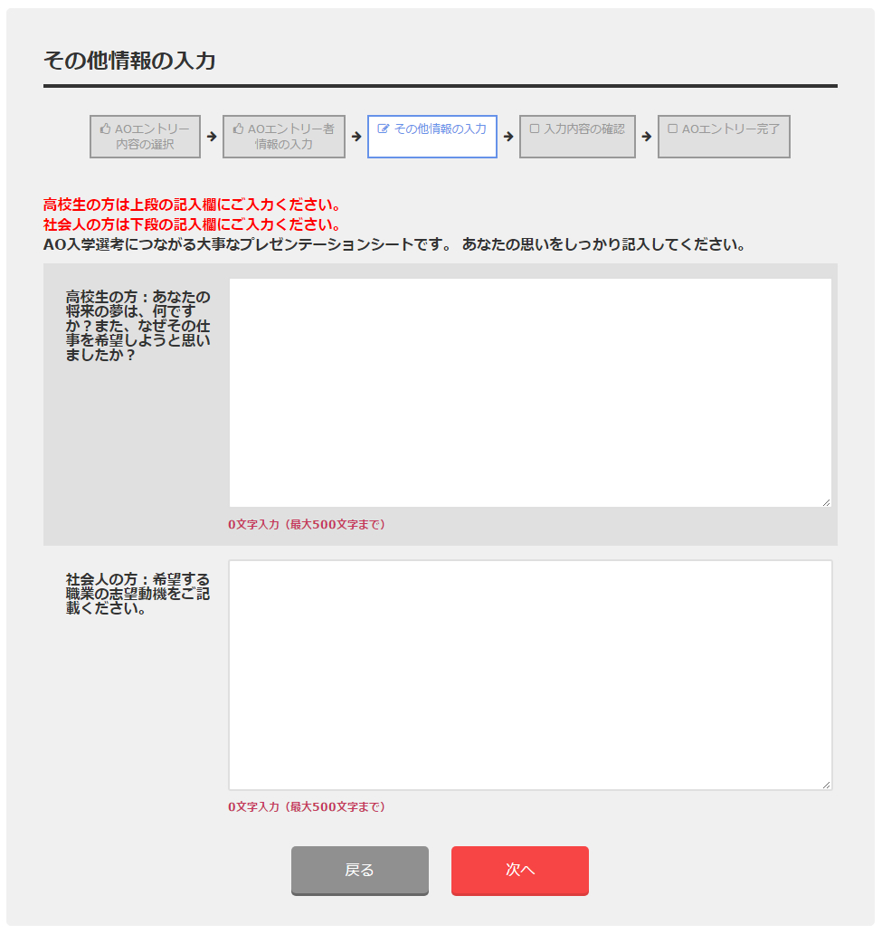 選択した「AO入学選考日」に学校にお越しいただき、選考を受けてくださいね!